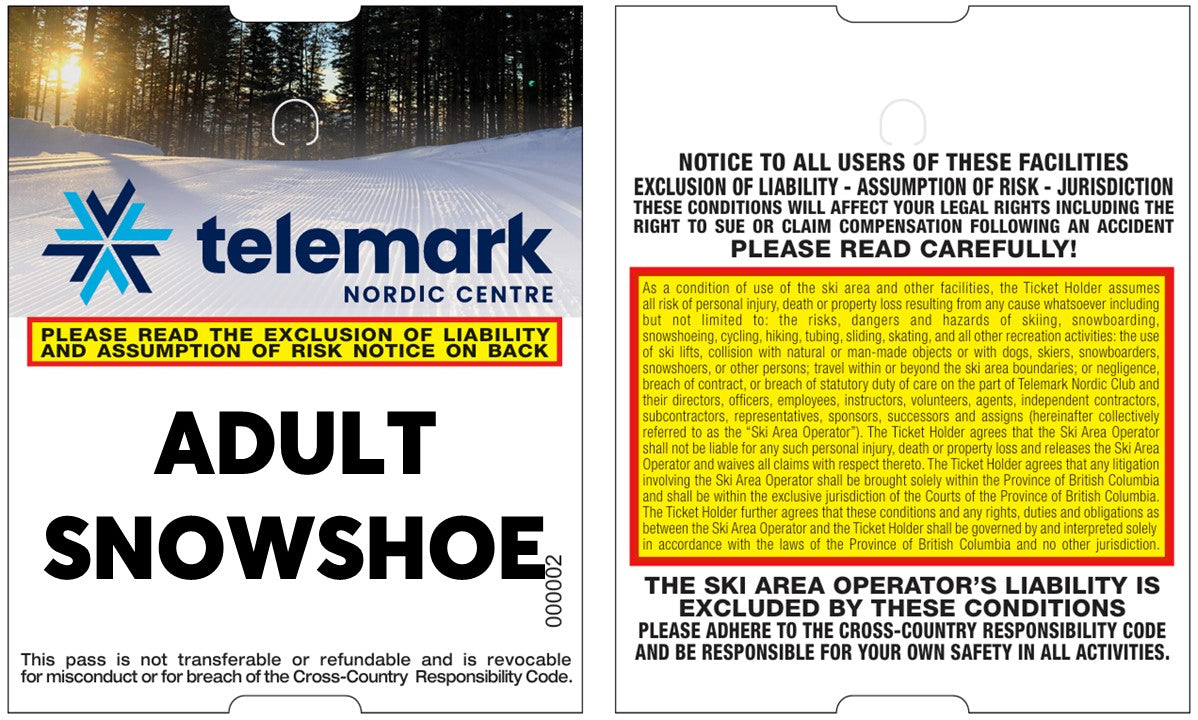Valid for use on Snowshoe trails only.  Good only on selected date.